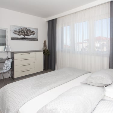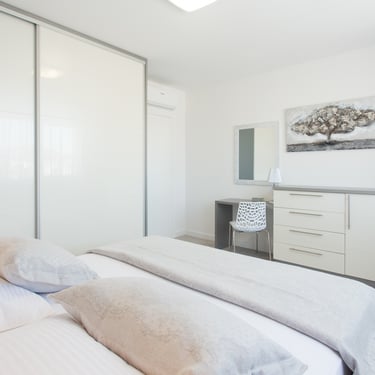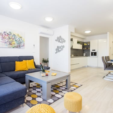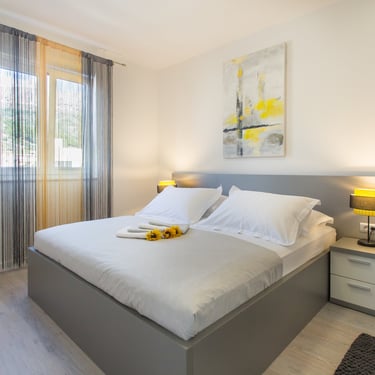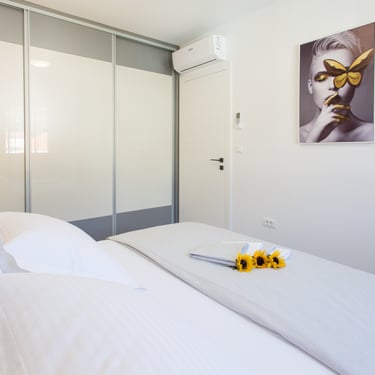 Escape to Apartment CA1, your luxurious seaside retreat in Podstrana, Croatia. Wake up to shimmering Adriatic views, sink into a plush, elegantly styled bedroom, and enjoy the comfort of a fully equipped kitchenette for a refined, carefree coastal stay.