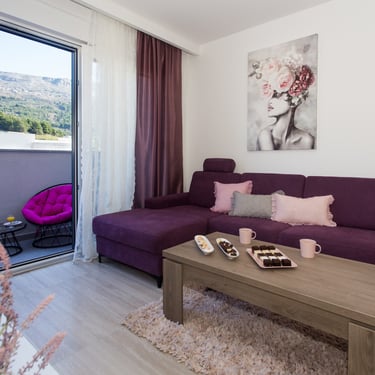 Escape to Apartment CA2, an elegant seaside sanctuary in Podstrana, Croatia. Wake up to shimmering Adriatic views, unwind in a plush, designer-furnished bedroom, and revel in sophisticated comforts and curated details for a truly luxurious, carefree coastal escape.