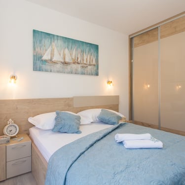 Escape to Apartment CA3, your luxurious seaside retreat in Podstrana, Croatia. Wake up to shimmering Adriatic views, sink into a plush, elegantly styled bedroom, and unwind in a refined, carefree coastal setting.