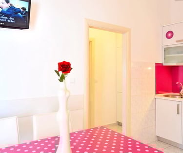 Two bright bedrooms filled with warmth and color await you in KA5. Step out onto your private terrace, set with a table for two, and let the Adriatic breeze and sweeping sea views turn every morning into something truly memorable.